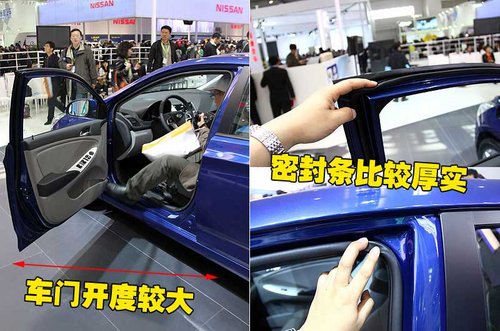 北京現代Verna的車門在完全打開的情況下開啟角度適中,駕乘人員上下車輛比較方便。在車門四周裝有厚實且質地柔軟的密封條,能夠起到很好的密封隔音作用。