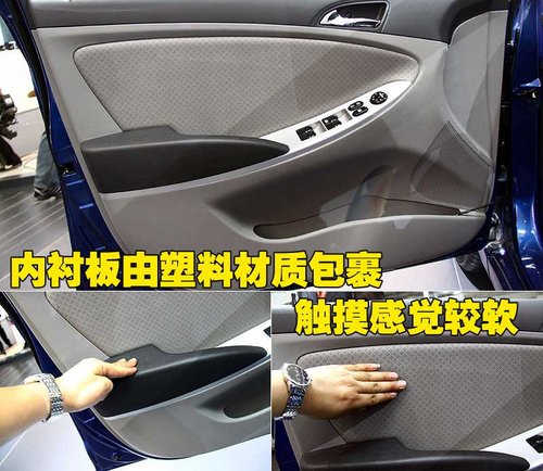 北京現代Verna4只外門拉手與車身同色,金屬感強烈,車門拉手附近做工細致,開啟的角度與所需的力度適中,沒有 “松散”的感覺,工藝質量較好。