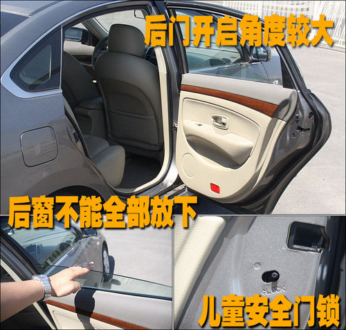 與前車(chē)門(mén)較大開(kāi)啟角度幾近相同的設(shè)計(jì),讓后排的乘員也可從容的上下車(chē)。后排車(chē)窗由于車(chē)門(mén)內(nèi)在的構(gòu)造原因無(wú)法降至最下端,不過(guò)車(chē)窗降至最低后的可用面積還是很大的。同時(shí),后門(mén)兒童安全鎖充分考慮到了兒童的乘車(chē)安全。