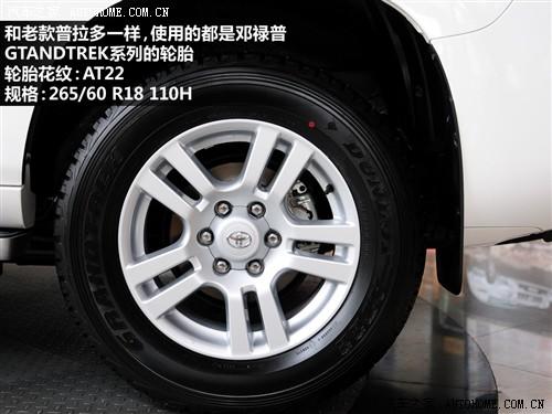 在輪胎和備胎方面,普拉多仍然堅持使用鄧祿普的GRANDTREK系列輪胎,只不過花紋從老款的AT20升級到AT22。另外,新款普拉多有備胎外掛和底盤內藏兩種版本,外掛顯得很彪悍,但長時間使用的話會引起尾門的變形,從而產生噪音和密封性的問題,這點老款普拉多車主經常抱怨,當然好處是車輛有足夠的位置設計副油箱,從而增加續航里程。進口和國產的新款普拉多選擇了將備胎隱藏在底盤下面的版本。