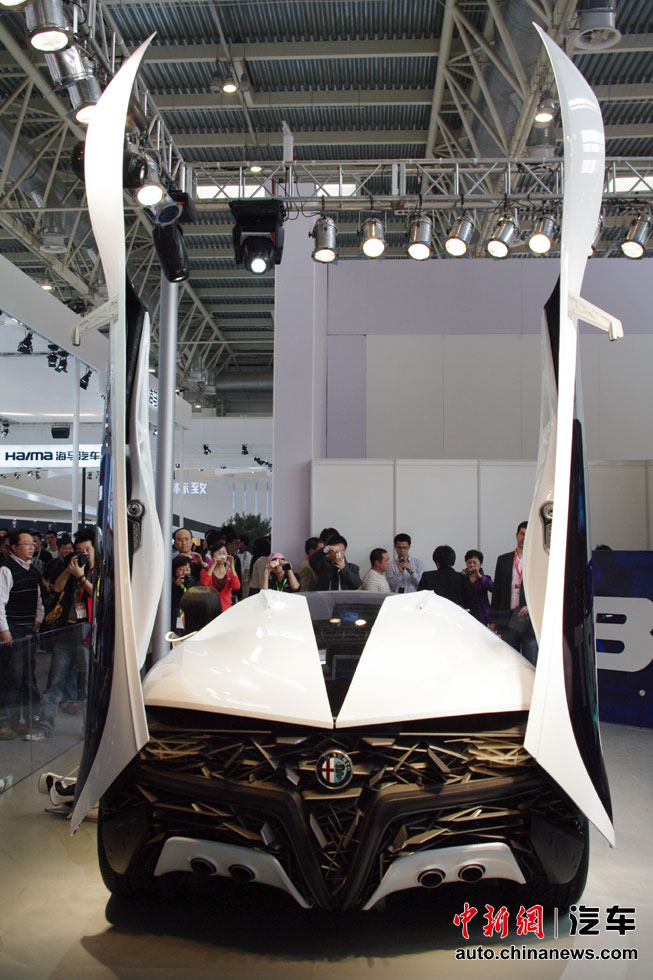 在人流如織的海外汽車巨頭的展館里,天價豪車成了當仁不讓的最搶眼明星,相形之下即使再靚麗的車模也黯然失色。圖為概念車Bertone Pandion