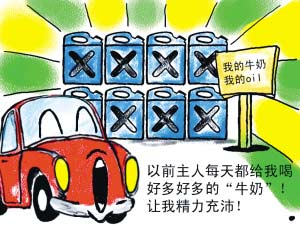 或許,當人類發明出不吃飯也能長大個的方法時,也就離無需耗能的永動機時代不遠了。不過現在,我們還需要吃飯,也還需要燒石油。石油價格飆漲只是給我們敲響了一聲警鐘,讓我們麻木的環保神經稍微受了點刺激,完全憑漲價來控制石油的消耗量簡直就是異想天開。當然,僅憑我們個人的力量并不能改變什么,但如果每個人都能形成一種環保意識,我想就不會有那么多人追求大排量,也不會有那么多人追求大空間。試想,當有一天有錢都沒法加到油的時候,一輛排量再大、再有面子的車,也會顯得格外可笑。(陳鑫欣)