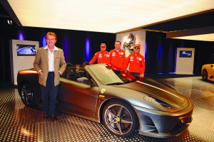 上周六(1月10日),法拉利Scuderia Spider 16M在位于北京金港公園的法拉利3S中心正式亮相,菲亞特及法拉利公司總裁、法拉利車隊主席蒙特澤莫羅(左1),法拉利車隊負責人多梅尼卡利(右2),以及車手萊科寧(左2)、馬薩(右1)都成了它的“陪同”。