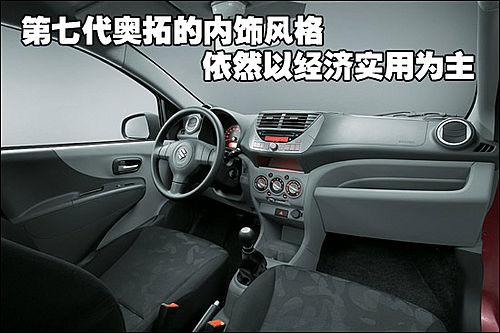 第七代奧拓的方向盤(pán)采用鈴木的傳統(tǒng)設(shè)計(jì)思路,造型與雨燕等車(chē)型基本一致,但由于成本的控制,并沒(méi)有配備音響控制功能。全新奧拓的轉(zhuǎn)速表采用獨(dú)立設(shè)計(jì),紅色的背景光使這款車(chē)看上去更富運(yùn)動(dòng)氣息,這一點(diǎn)與比亞迪F0的儀表盤(pán)設(shè)計(jì)幾乎相同。