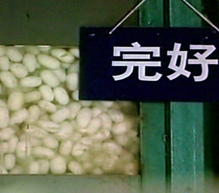 徐傳金:繭站里第一天開始收1500塊,繭販子也是1500塊,那么繭販子到第二天他們漲高啦,他們覺得搶手了了,他們的數量收不到呀,漲高了20塊,那么繭站馬上調高,繭站調到1550,漲50塊,到第三天繭站漲到1600,質量不看了,不看質量了,毛繭統統要了。