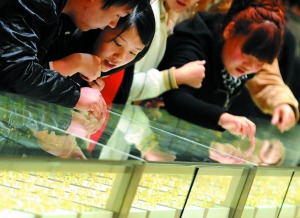 售貨員告訴記者現在賣得最好的黃金品種就是金條,由于賣場的銷售價格比國際金價有個滯后期,所以現在總有人急著出手,趕在下次漲價之前“藏”金條,而且現在出手越來越大,100克的金條成為“藏金族”的最愛。