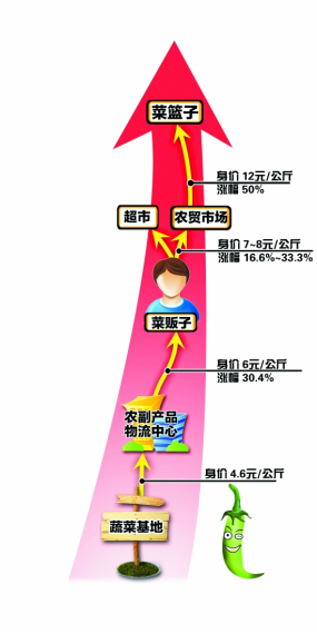 新華社“新華視點”記者日前調查發現:目前蔬菜生產和流通環節出現一些怪現象,從批發市場到城內的零售市場,蔬菜加價往往超過50%,其中少數菜品價格甚至翻倍。