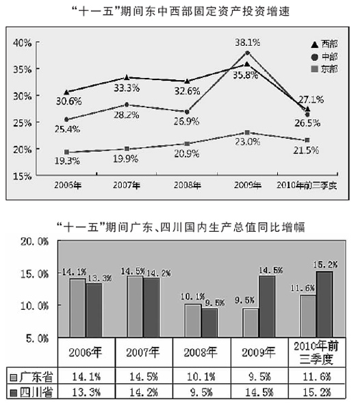 “十一五”期間,國(guó)家促進(jìn)區(qū)域協(xié)調(diào)發(fā)展的政策力度前所未有,各地對(duì)地區(qū)發(fā)展戰(zhàn)略研究與實(shí)施的重視程度前所未有,區(qū)域經(jīng)濟(jì)發(fā)展取得的成績(jī)也前所未有。特別是隨著一系列區(qū)域規(guī)劃和政策文件的密集出臺(tái),東部地區(qū)的發(fā)展支撐帶布局進(jìn)一步完善,中西部地區(qū)新的增長(zhǎng)極不斷涌現(xiàn),中國(guó)區(qū)域經(jīng)濟(jì)版圖日趨清晰,沿海與內(nèi)地競(jìng)相奮進(jìn)、良性互動(dòng)的發(fā)展格局基本形成。