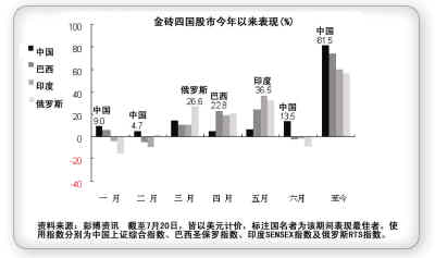 金融海嘯之后,中國、巴西、俄羅斯、印度在經(jīng)濟增長以及財政上的表現(xiàn)令人刮目相看,股市今年以來平均漲幅逾六成,中國的漲幅超過八成,將成熟國家遠(yuǎn)遠(yuǎn)拋在后面