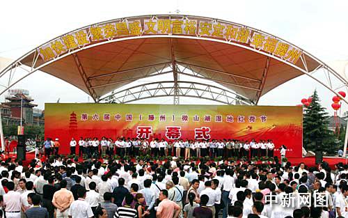 圖為第六屆中國滕州微山湖濕地紅荷節開幕式現場。攝影:馬圣泉