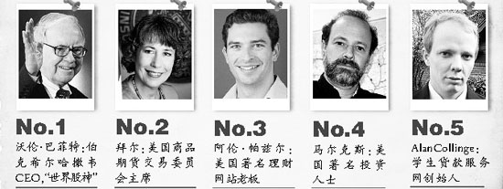 而前美聯(lián)儲主席艾倫·格林斯潘位列第八。格林斯潘令世界經(jīng)濟(jì)持續(xù)增長,被尊稱為“藝術(shù)大師”。但是2008年秋,格林斯潘自由放任的經(jīng)濟(jì)政策飽受責(zé)難。美國媒體認(rèn)為他現(xiàn)在應(yīng)該做的不是表示驚訝,而是向美國道歉。