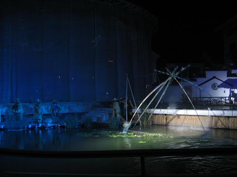 昨晚,可容納千人的《四季周莊》觀眾席座無虛席,演出的三個篇章--漁歌、漁婦、漁燈、漁作表現(xiàn)的“水韻周莊”;以春的《雨巷》、夏的《采藕》、秋的《豐收》、冬的《過年》反映的“四季周莊”;迎財神、打田財、阿婆茶、水鄉(xiāng)婚慶展示的“民俗周莊”,場面恢宏,江南水鄉(xiāng)文化的獨有性深深吸引著海內外游客眼球。