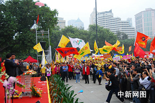 中新網廣州2月23日電(記者 莫非 通訊員 月明 梁婕 鐘山)廣東旅游業界2009年大利好浮出水面,國民旅游休閑計劃23日開始正式實施。廣東省各大旅業集團、旅行社紛紛積極響應,召集了來自珠三角地區4000多名游客聚集在廣州中山紀念堂前參加啟動儀式。