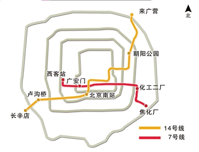 北京地鐵7號線與14號線路線圖