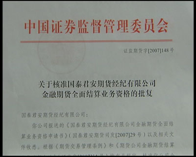為了搞清楚這個問題, 我們記者也走訪了與股指期貨息息相關(guān)的幾家機(jī)構(gòu)。國泰君安期貨公司是首批拿下股指期貨經(jīng)紀(jì)業(yè)務(wù)資格的期貨公司,國泰君安期貨公司總經(jīng)理何曉斌一見到記者便拿出了國泰君安獲準(zhǔn)經(jīng)營全面結(jié)算業(yè)務(wù)資格的證書,而他們恰恰是第一號會員,何曉斌告訴記者,作為第一號會員,處在各方高度關(guān)注的視線中,所以準(zhǔn)備工作容不得一點馬虎,要備戰(zhàn)股指期貨,經(jīng)紀(jì)公司必須做好如下方面的準(zhǔn)備: