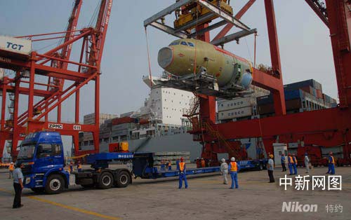 7月24日,空客A320系列飛機(jī)天津總裝線首批大部件從德國(guó)漢堡經(jīng)海運(yùn)抵達(dá)天津。胡志強(qiáng) 攝影