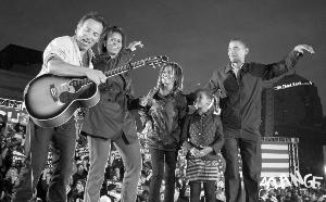 奧巴馬的妻子與兩個女兒為他上臺助陣 新華/路透圖