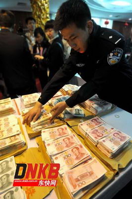 可當民警當場打開了他手中的手提箱時,他頓時蔫了。箱子中,十幾摞碼得整整齊齊的鈔票,還散發著油墨香。經清點,正好58萬元,而且全是假鈔。