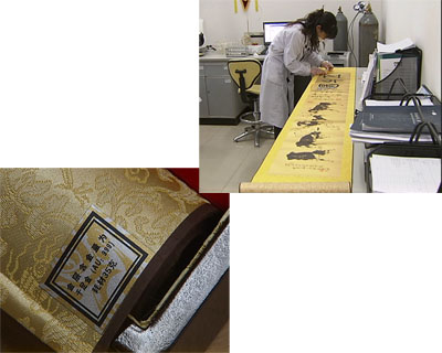 記者百般努力之下,終于在北京找到了一家權(quán)威的檢測(cè)機(jī)構(gòu),譜尼測(cè)試是一家專業(yè)的測(cè)試機(jī)構(gòu),不僅具備中國(guó)合格評(píng)定國(guó)家認(rèn)可委員會(huì)CNAS及CMA資質(zhì),同時(shí)他們的檢測(cè)報(bào)告也得到美國(guó)、英國(guó)、德國(guó)等58個(gè)國(guó)家和地區(qū)相互認(rèn)可,為了準(zhǔn)確測(cè)量這幅純金畫卷的含金量,檢測(cè)人員首先剝開(kāi)了裝裱的布,測(cè)出純金畫卷的面積為5837.66平方厘米。