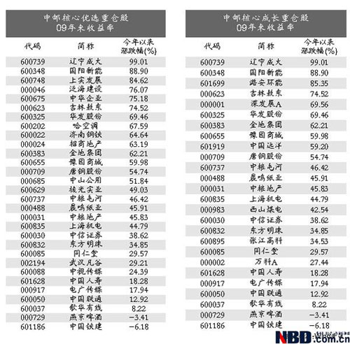 中郵系基金一向以高倉位操作而著稱,不過,高倉位操作的基金并不只中郵一家,中郵系基金業(yè)績一馬當先秘訣何在?它選擇重倉股究竟有何獨到之處呢?記者查閱中郵系基金2008年年報發(fā)現,中郵系基金4季度重倉的地產、能源股漲勢兇猛,為其成功奪魁貢獻不小。