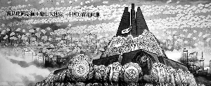 繪制長卷前后歷時四年,中間數(shù)易其稿,嘔心瀝血,終于在今年完成了這幅高18.5米、長80多米的《唐山大地震祭》巨幅長卷。長卷分為地震將臨、神兵天降、自救互救、八方支援、傷員外運、清尸防疫、恢復(fù)生產(chǎn)、重建家園、再組家庭、歡送親人十部分。為表現(xiàn)唐山地震中的磨難,我們以“祭”字為切入點,展示唐山人在大悲大痛面前的壯烈激昂,以黑白為基調(diào),全景式地展現(xiàn)凝重悲壯的場景,勾勒出母親的哀慟、孩童的驚恐、人們絕望而又渴生的奮爭,以及在那死亡彌漫的廢墟間閃動著無數(shù)紅領(lǐng)章和五角星,讓觀者如身臨其境。當(dāng)年唐山抗震救災(zāi)指揮部副總指揮遲浩田將軍特為畫卷題詞:“那萬眾一心,共赴危難的感人情景,令我終生難忘。”