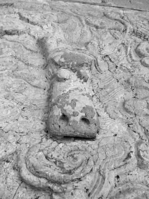 在崇圣殿前臺(tái)階處有一幅石刻團(tuán)龍,刻工精湛,堪稱清代雕刻藝術(shù)的代表作,龍?bào)w雕刻圖案惟妙惟肖。市民于先生所說(shuō)的,便是在此處的龍首。只見龍?bào)w雕刻圖案上,龍首損壞處確用水泥重新塑過(guò),看上去如豬嘴一般,雖然修復(fù)得“有鼻子有眼”,但看上去不倫不類,做工很是粗糙。