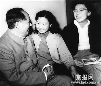 毛主席在談到國內情況時說:世界上就怕“認真”二字,共產(chǎn)黨就是最講“認真”。這時從大禮堂走廊人群里傳出了一個聲音:“毛主席,請您不要走,請坐下歇歇。”毛主席微笑著點了點頭,坐下來點燃了一支香煙慢慢地吸著。同時把身體向前一傾,問坐在講臺下面最前面的學生的生活情況。