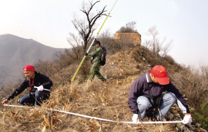 昨天,市文物局在對延慶縣永寧羅家臺村長城進行實地測繪時宣布,長城北京段測繪第四階段調查全面展開,預計全部測繪工作將于明年結束。此前的測繪中,在延慶縣新發現5公里長的石砌長城。