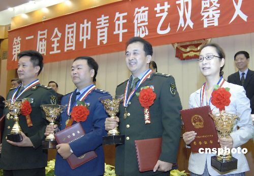這一由人事部和中國文聯聯合開展的評選表彰活動始于二00四年,當年授予三十名藝術家“全國中青年德藝雙馨文藝工作者”榮譽稱號,此次則擴充至五十六人,涵蓋舞蹈、美術、音樂、曲藝、攝影、影視等各門類,彭麗媛、鞏漢林、黃宏、閻維文等一批觀眾耳熟能詳的文藝明星,以及業內知名人士如中國新聞社副總編王瑤(中國首位荷賽大獎獲得者)等人皆在列。