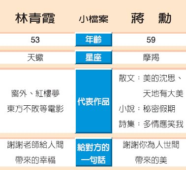 為了這場(chǎng)由紅樓夢(mèng)而起的師生對(duì)談,林青霞從香港飛來(lái),和蔣老師回到以前上課談紅樓夢(mèng)的地方,但當(dāng)年同窗有人已不在。舊地開(kāi)講,老師還是蔣勛,學(xué)生只有林青霞一人。