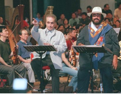 2001年6月,先期到達(dá)北京參加世界三大男高音午門(mén)演唱會(huì)的帕瓦羅蒂和卡雷拉斯,20日下午與中國(guó)中央歌劇院的演員和樂(lè)隊(duì)一起排練。 中新社發(fā) 李剛 攝