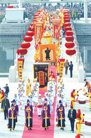 “我們要向陜西祭陵、山東祭孔活動取經。”河南省和鄭州市的領導在接受媒體采訪時毫不諱言,“比如可設民間主祭人,拿出若干點火上香、敬獻花籃的名額面向海內外企業界進行市場化操作。向來賓饋贈的禮品,也可用出售冠名權的方式,由知名品牌公司承擔。鄭州市、新鄭市還在研究拿出幾塊地方,設立‘敬仰林’、‘子嗣林’、‘功德碑林’,并規范運作,融公益性與營利性為一體。”