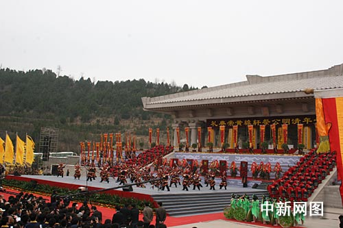 全國人大常委會副委員長華建敏、全國政協副主席張榕明、澳門特首何厚鏵等高級官員出席了今天的公祭軒轅黃帝典禮。陜西省省長袁純清恭讀了祭文。來自中央二十幾個部委,中國三十一個省直轄市、自治區,港澳臺及海外代表共計八千余人參加了祭祀儀式!饵S帝祭祀大典圖志》也在儀式上舉行了首發式。
