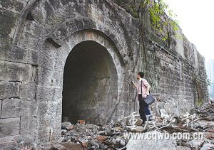 記者在現場看到,城墻上有一個高、寬均約3米的城門,旁邊還有兩個寬1米、高3米的城門。在臨近嘉陵江一側,還有一段長達十多米的城墻。兩段城墻上劃著巨大的紅叉,被列入拆遷范圍。