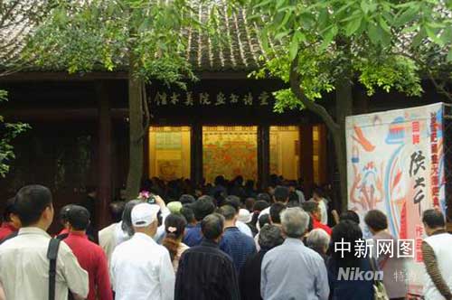 4月28日下午,新世紀以來最大規(guī)模的一次張大千作品展在四川成都杜甫草堂開展,吸引了眾多書畫愛好者前來參觀。作 者:伊西科