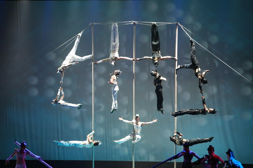 中新網5月30日電 5月28日,中國雜技團一行順利抵達臺灣,從5月31日開始,將為臺灣同胞奉獻為期10天的頂級雜技表演。中國雜技團此行是應保險巨擘——ING安泰人壽之邀,在其20周年慶典之際前往臺灣為島內同胞獻技。表演的節目正是將于奧運期間在北京保利劇院連續演出50余場的大型情境雜技《SPLENDID,一品一三絕》。