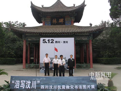 中新網(wǎng)西安6月6日電(記者 冽瑋)面對(duì)汶川特大地震災(zāi)難,書法能做什么?今天在西安碑林博物館舉辦的《“淚寫汶川”抗震救災(zāi)書法圖片展》,以五十四幅飽含激情的書法藝術(shù)作品,為人們?cè)忈屃酥袊?guó)人在災(zāi)難面前不屈不撓的頑強(qiáng),眾志成城的團(tuán)結(jié),大愛無(wú)疆的奉獻(xiàn)。