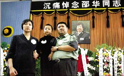 昨天,在通往靈堂的走廊里,邵華將軍生前創(chuàng)作的幾十幅攝影作品靜靜陳列。每個(gè)從走廊經(jīng)過(guò)的人都忍不住停下腳步。除邵華的作品外,題為“邵華將軍幸福的一家”的系列作品格外引人注目,作品中既有邵華、毛新宇一家人的合影,也有一家人的生活照。一位來(lái)自邵華家鄉(xiāng)湖南的親友從看到照片時(shí)就開(kāi)始流淚,一直哭著進(jìn)入靈堂。