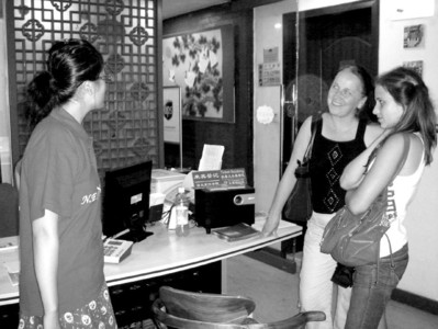 Sue介紹,在國外的一些旅游網站上,有專門的“四合院賓館”的匯總,到了那里,逐一尋找,通過看介紹和圖片先定下自己中意的幾個四合院,然后通過電話咨詢,了解前臺的英語水平和相關情況,最終確定入住的賓館。