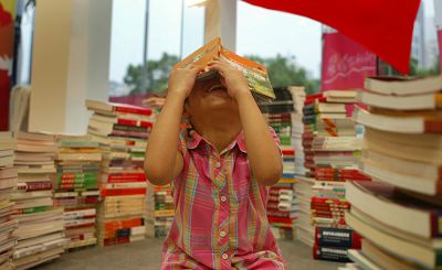 書展上,小女孩沉浸在書籍帶來的快樂中 早報記者 史訓鋒 實習生 王浩然 圖