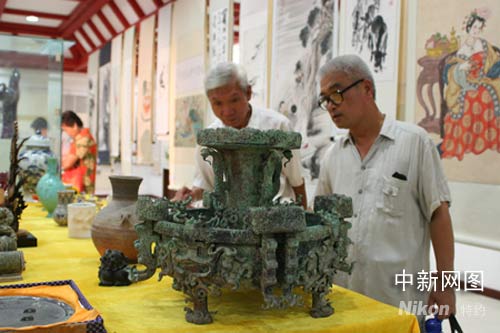 據(jù)王老介紹,令人嘆為觀止的《百鶴圖》上世紀(jì)初在一座元代古墓中出土,后被他收藏。百只形態(tài)各異的白鶴,或棲于松枝,或躍躍欲飛。靜于紙上的松樹(shù)、白鶴因畫(huà)家精微的表現(xiàn)手法如流動(dòng)的圖像;高八十九公分的良諸玉琮,比臺(tái)北故宮博物院中收藏的五十九公分高出了三十公分,非常罕見(jiàn);戰(zhàn)國(guó)尊盤(pán) 、從漢代至清代時(shí)期的陶器、瓷器。近千件藏品使得開(kāi)展第一天就吸引了近千名市民前來(lái)觀寶。一位從事藝術(shù)工作的參觀者稱:“這是藝術(shù)的饕餮盛宴,這些藝術(shù)品所表達(dá)的美好祝福,所有觀者都能感受得到。”