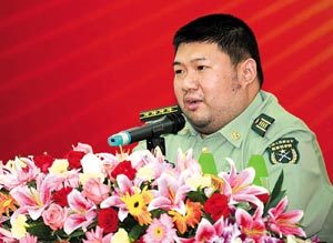 毛澤東嫡孫毛新宇昨日在廣州松田職業學院給大學生作報告。圖據羊城晚報