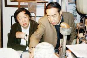 賈平凹誠實而憨厚地點頭微笑著,用濃重的陜西口音如數家珍般向大馮介紹自己的“寶貝”。