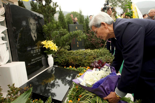 來自北京、上海、杭州等地燕京大學(xué)校友代表參加了十七日的安葬儀式。燕京大學(xué)校友會(huì)北京校友代表國仲元先生把一捧潔白的百合花輕輕地放在墓碑前:“老校長(zhǎng),您安息吧!