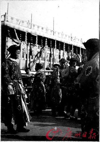 據介紹,在這些老照片中,有一組450張照片來自一位英國人,這組老照片相簿的封面上印著“BB”兩個字母。照片拍攝于1909年前后,翻開這組老照片,北京、上海、南京、香港等中國大城市的舊貌盡收眼底。其中有21張照片反映的是當時慈禧太后入葬東陵時的情景,尤為珍貴。