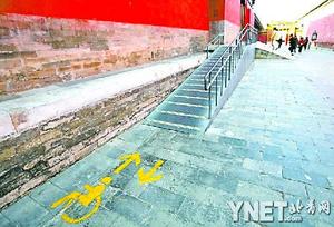 今年奧運之前,故宮博物院內(nèi)修建了一條無障礙通道,整條通道由兩臺“無障礙升降機”、無障礙坡道、無障礙衛(wèi)生間等組成。從最南端的午門直至最北端的神武門,肢體殘疾人可以坐著輪椅從南至北游覽整個故宮,各界游客對此贊不絕口。記者發(fā)現(xiàn)在今年5月,國家文物局曾發(fā)布《關(guān)于故宮無障礙建設(shè)和完善方案的批復(fù)》中稱,故宮中無障礙設(shè)施為“臨時性的”,殘奧會后應(yīng)予以拆除。由此,這些耗資300萬元建成的設(shè)施,將面臨著被拆除的命運。