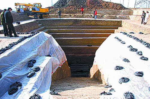 關(guān)于該墓被盜后還能否清理出文物的問題,有關(guān)專家分析說,估計大件文物留存的可能性小,但仍希望能找到小件文物,以供研究之用。(新安晚 竇祖軍)