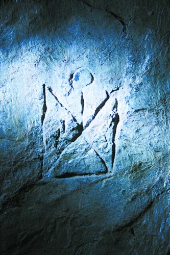 剛結(jié)束的考察中,專家對目前發(fā)現(xiàn)的3000多幅圖案中的約500幅進行研究,將其分為巖畫和巖刻符號兩大類。幾幅可以辨認的巖畫分別表達了人物、天、地的含義;巖刻符號,由于數(shù)量較多、內(nèi)容復(fù)雜,暫時按形態(tài)分作9類22式,它們多為洞穴狀刻符,有數(shù)量關(guān)系,且多為6或6的倍數(shù)。