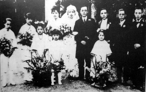 1923年,聶其璧(右五)、周仁(右四)結婚照,宋美齡(右六)當儐相