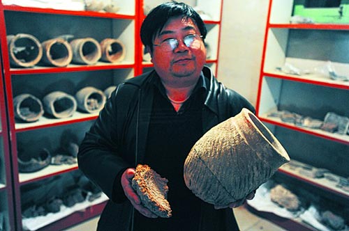 盔形器上附著紅燒泥塊 本版攝影 記者 郭建正